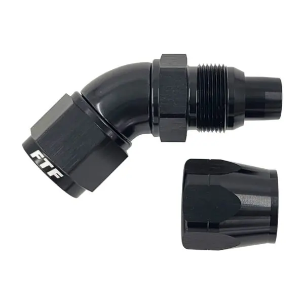 FTF Black Hose End One Piece Cut Style Swivel 45° An10